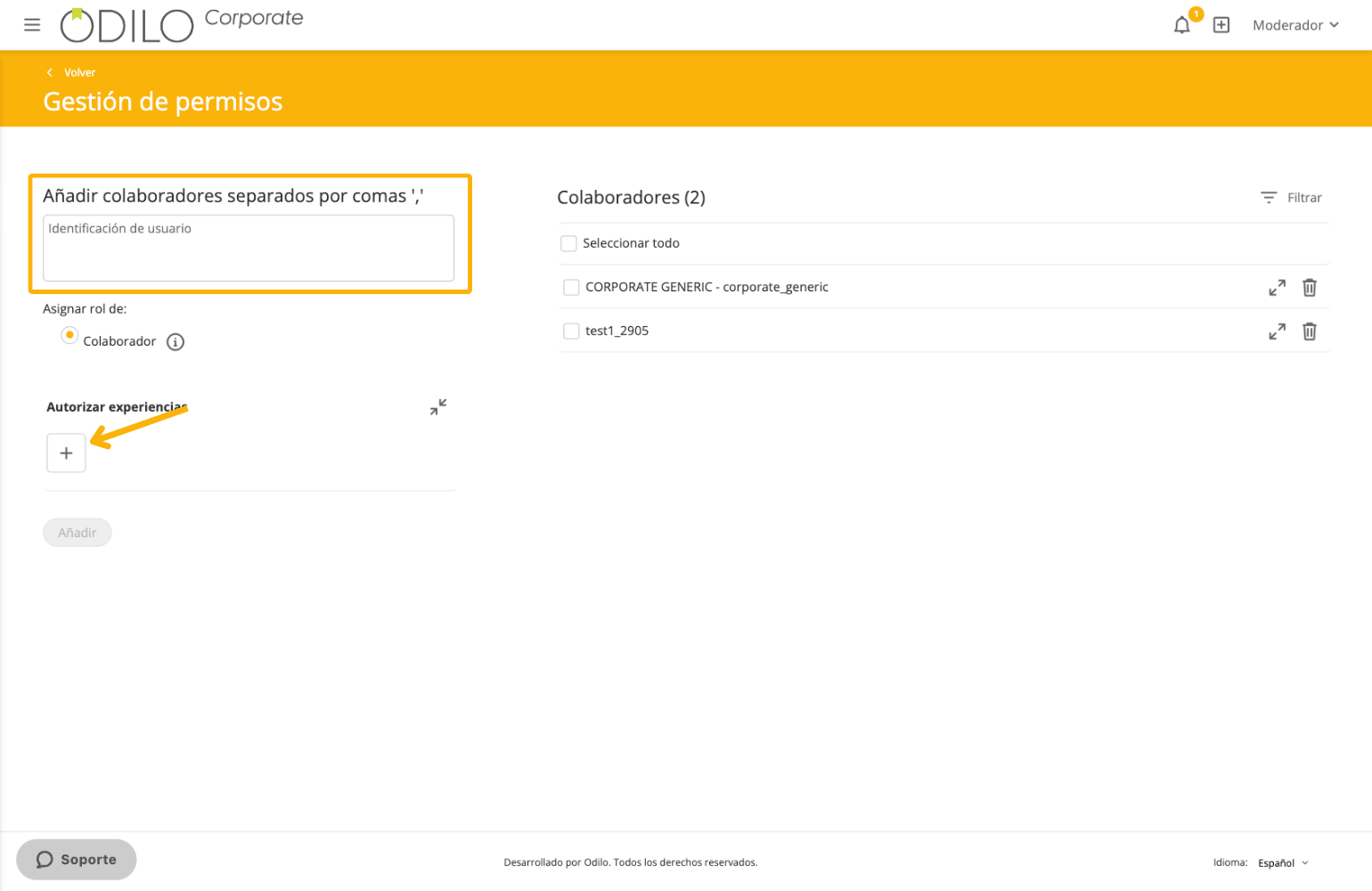 Como moderador de una Experiencia de aprendizaje, podrás conceder permisos de colaborador a otros usuarios moderadores o a otros miembros de la organización que requieran poder editar y mediar la experiencia de experiencia contigo.