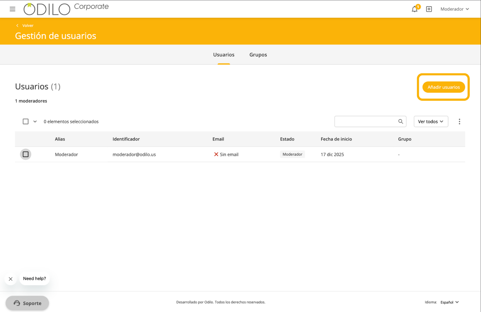 Una vez ya hayas añadido al usuario, haz clic en “añadir” en la esquina superior derecha.