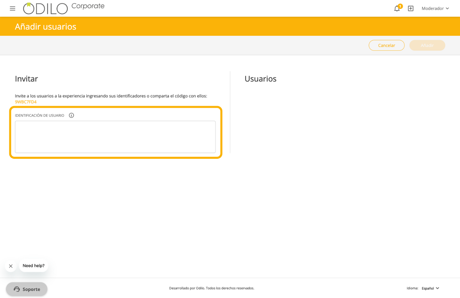 Inserta el identificador del usuario y/o separa por comas en caso de que quieras añadir a más de un usuario y pulsa la tecla “Enter” de tu teclado.