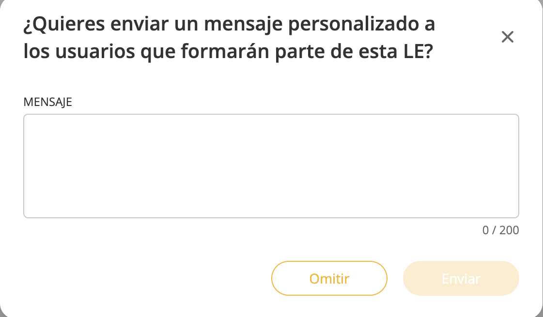 Puedes incluir un mensaje si lo deseas para que se les notifique que han sido añadidos a una nueva Experiencia de aprendizaje.